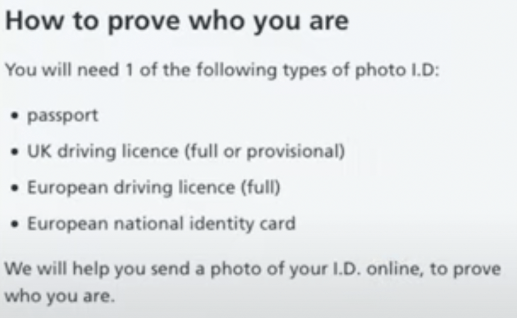 - To submit photo I.D., you can use your passport, UK/ European driving licence, or European national identity card