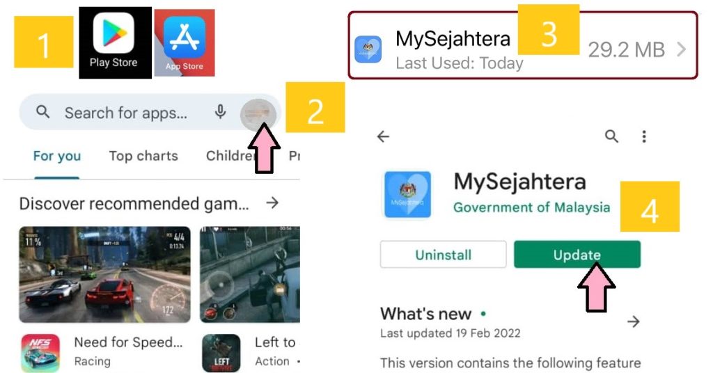 Ini caranya untuk update MySejahtera ke Versi terbaru: